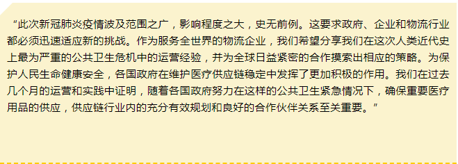 自从新冠肺炎疫情爆发以来,全球对医疗用品的需求激增。例如,联合国儿童基金会采购的口罩比2019年增加了100倍,医用手套增加了2000倍。而将医疗用品从距离遥远的生产地运送到一线使用,正是在处理公共卫生紧急事件第一阶段中,对大流行进行应对管理最重要的环节之一。由于生产加工地理位置集中、航空运力有限,以及缺乏入境检验检疫,令个人防护用品入境面临重大挑战。为确保在未来的公共卫生危机中医疗物资供应稳定,政府需要与公共和私营部门建立伙伴关系,建立一套全面完善的公共卫生危机战略和架构。dhl寄件,dhl电话:0769-21680870